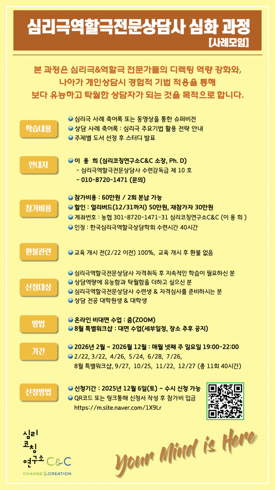 [교육과정안내] 2026년 심리극역할극전문상담사 심화과정(사례모임)